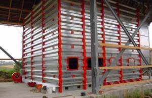 "Gruber" правоъгълни складове за зърно с цялостно изпразване чрез стичащо дъно могат да бъдат пригодени оптимално към всяка сграда или вътрешна помещиние. |