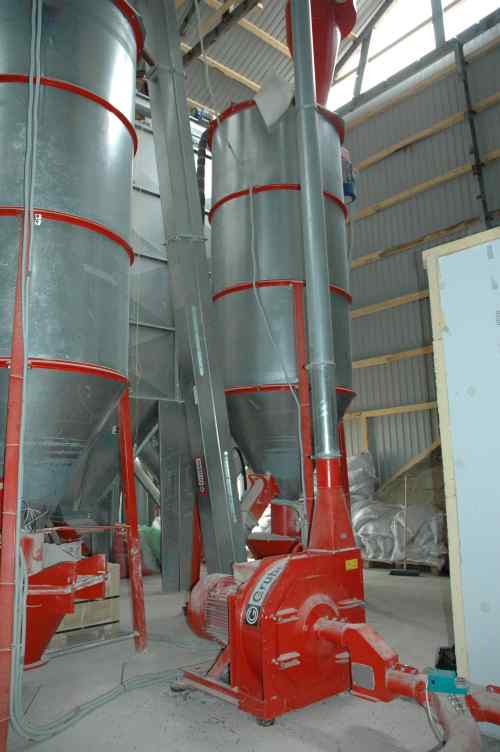 | Фуражна кухня Технологичен модул: Мелеща и смесваща инсталация – автоматична теглилка с дозиращ компютър Мелещите компоненти на инсталацията се задействат автоматично по програмата зададена на управляващия компютър. Прецизна смесителна система чрез поединично теглене на компонентите на смеската. |