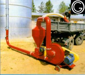 Комплектна, с готова за експлоатация изработка с лопатково колело, автоматичен въздушен клапан, комплектно електрооборудване, входна вана за зърно, с колесар за придвижване.