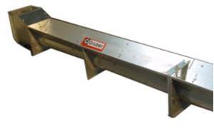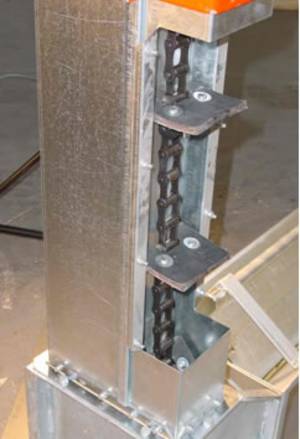 | Страничен шнек за пренасяне на зърно от зърнорезервоара към верижния елеватор Възможно е доставяне на шнек с дължина до 10 м, в специални случаи възможно и до 15 м. Възможна производителнос на преноса 10 - 25 тона При дължини от 6 и повече метра препоръчваме специално допълнително задвижване. в ляво: Фалцова елеваторна шахта със стандартна стоманено-ролкова елеваторна верига и щанцовани гумени поемници (гребла). Висококачествена стоманена верига, извънредно устойчива на натоварвания. Каучуковите поемници са изработени от висококачествен тъканен материал. |