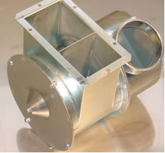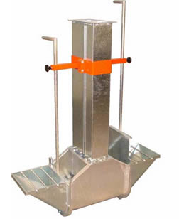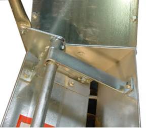 | Основата (опората, кракът) на елеватора двустранно с преграждащ (затварящ шибър) и входна фуния. Основата на елеватора е от материал 3 мм., горещо поцинкован Основа на елеватора, посредством затварящ шибър – 100% затваряне, с което е възможен съвсем празен ход на елеватора, дори и при пълен зърнорезервоар (кош) |